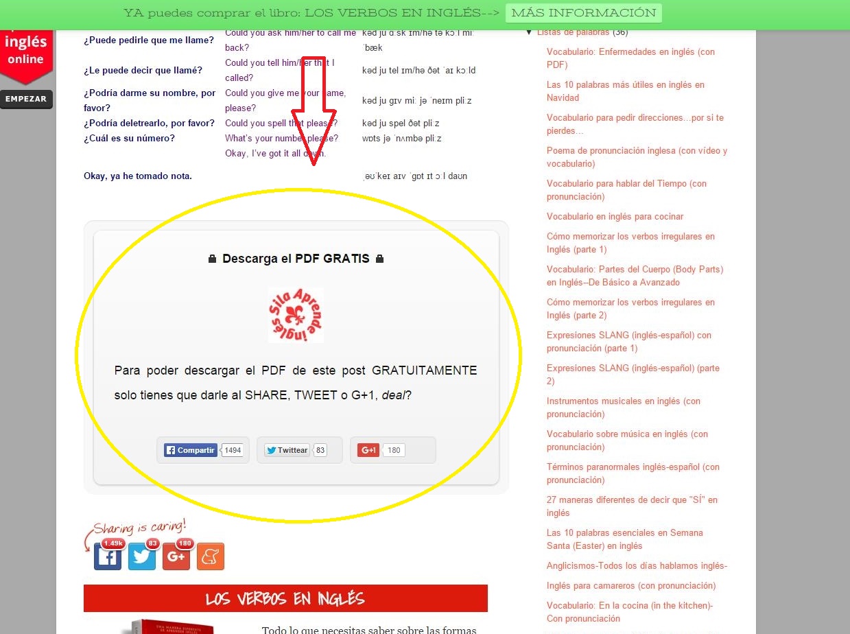 Solo tienes que compartir el post en tus redes sociales y te aparecerá el link desde donde te podrás descargar el documento.